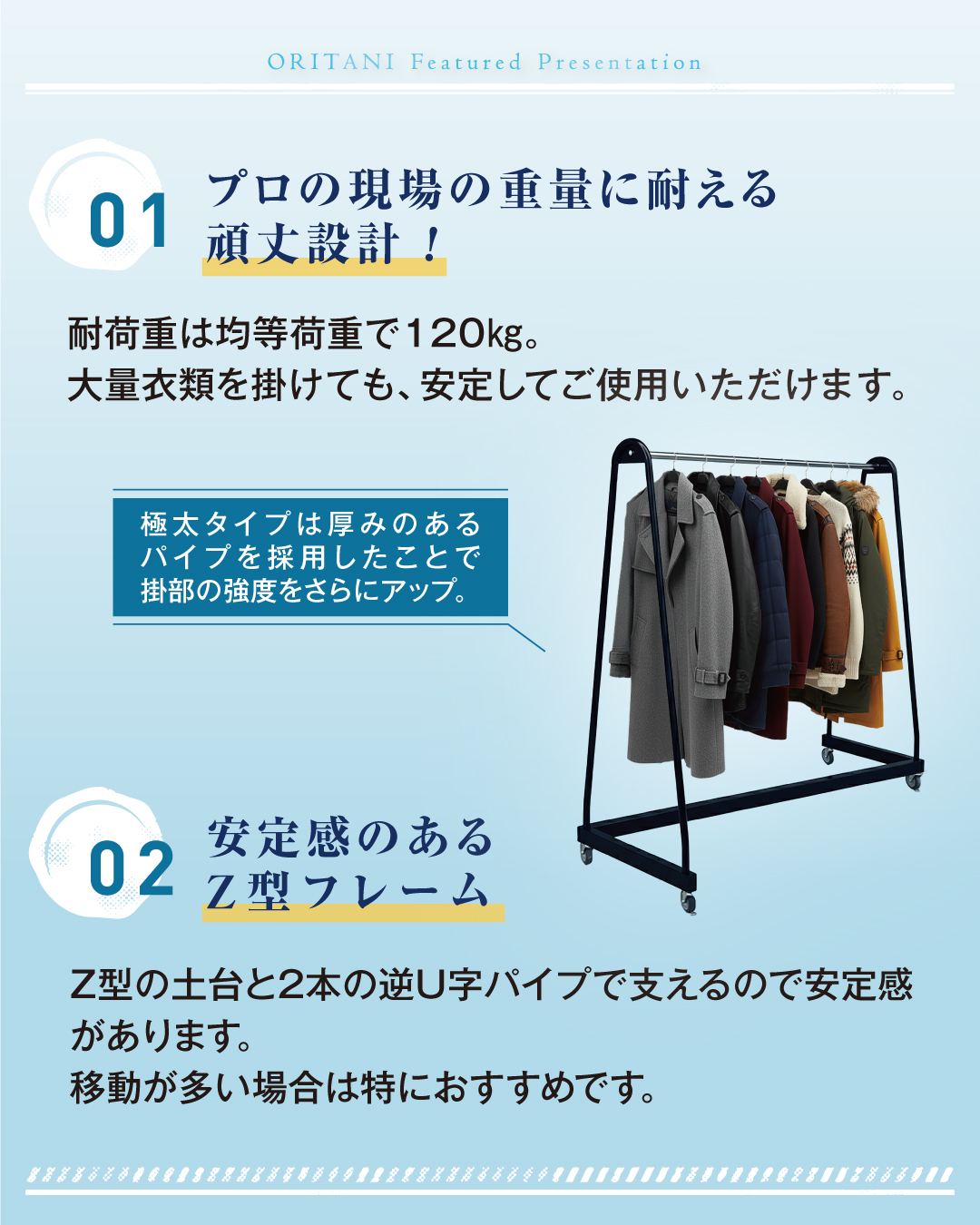【極太パイプ】のタイプは、厚みのあるパイプを採用!!掛け部の強度をさらにUP!