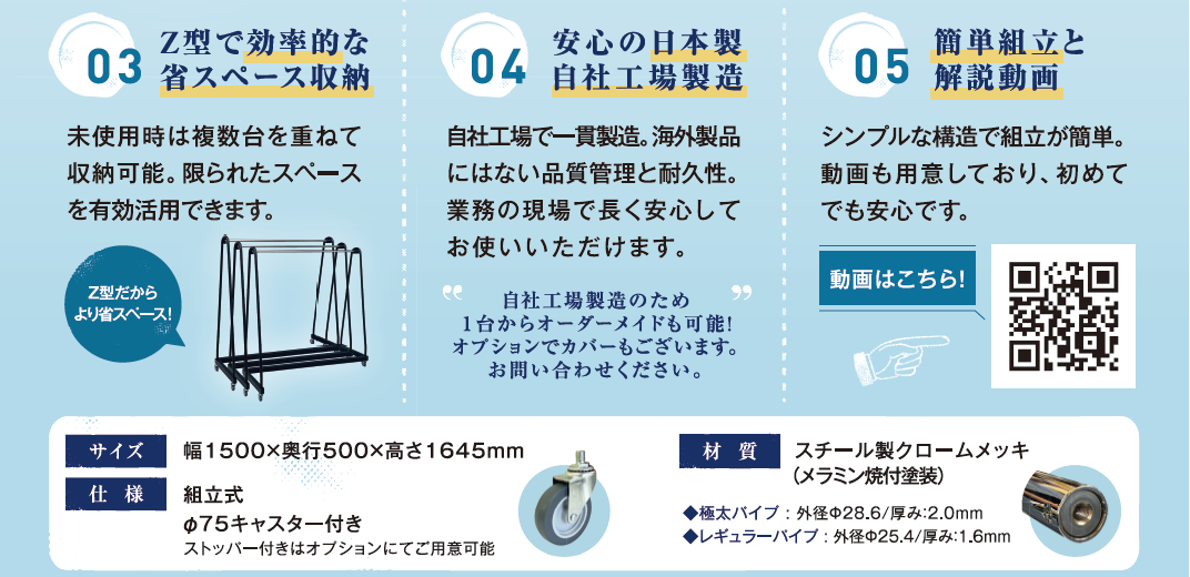 ハンガーラックZ型逆U字組み立て方動画はこちら ↓